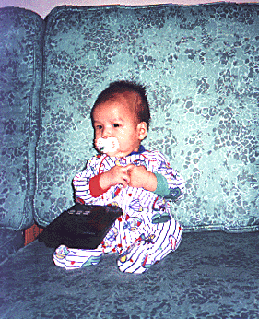remote control. Again, he can't sit up yet...we faked it! "Forget that purple